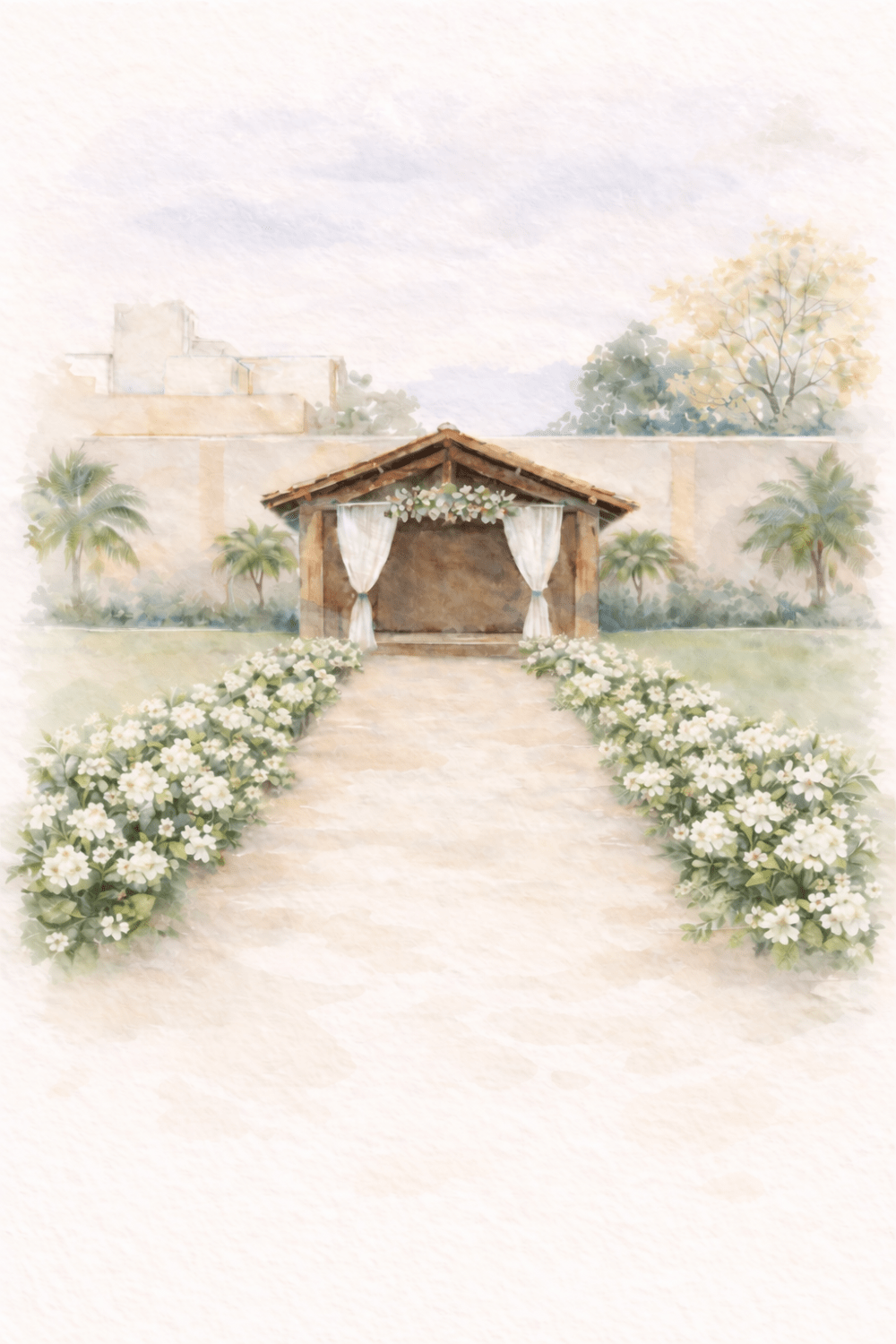 Gostaríamos muito de contar com a presença de todos vocês no momento em que nossa união será abençoada diante de Deus! A cerimônia será extremamente pontuais. Contamos com vocês! Dia 10 de setembro de 2026, às 20h. Jardins Caiçara - Rua Ramos de Azevedo, 153 - Monsenhor Messias, Belo Horizonte -MG, 30720-470